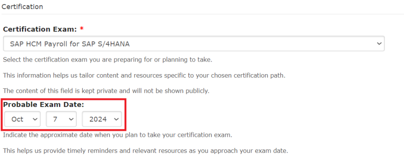 - Certification Exam: Choose the certification exam you are preparing for from the dropdown list (e.g., SAP HCM Payroll for SAP S/4HANA). This helps ERPPrep tailor content specific to your certification.